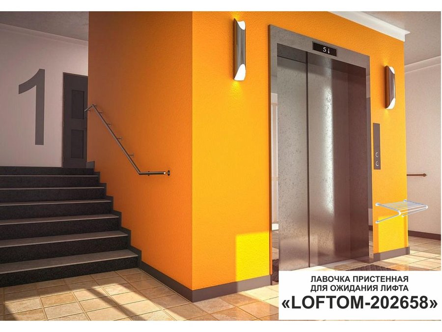 Лавочка пристенная "LOFTOM-202658" табурет для лифта, серый, стул к стене, крепится в подъезде дома