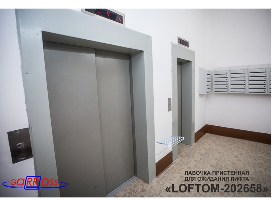 В корзину Купить в 1 клик Лавочка пристенная "LOFTOM-202658" табурет для лифта, серый, стул к стене, крепится в подъезде дома