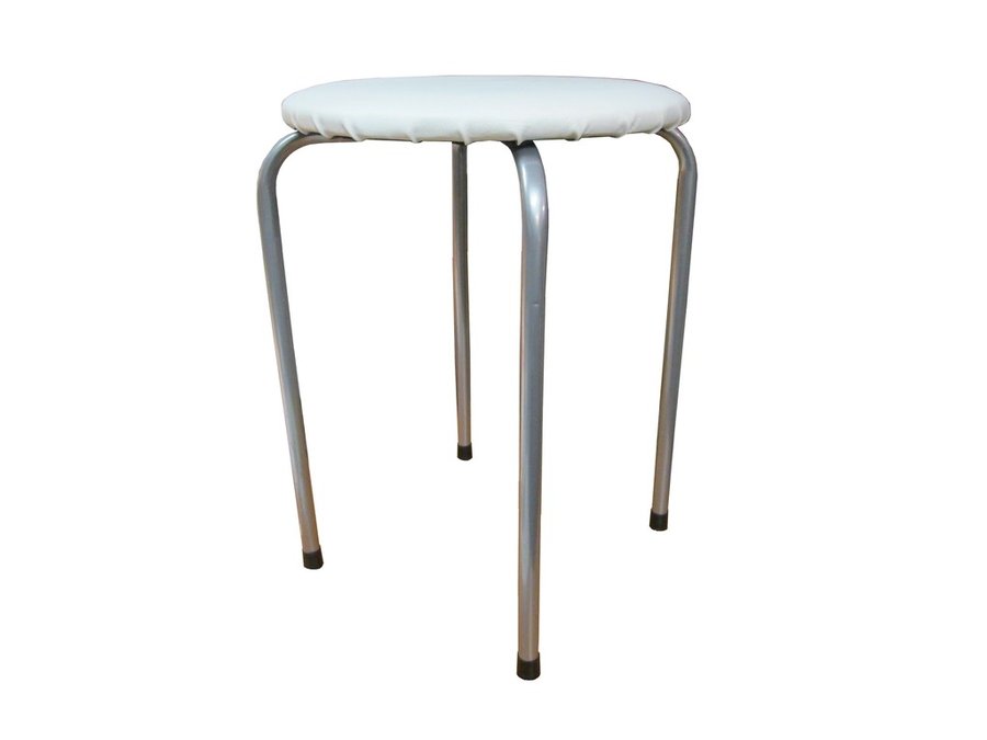 В корзину Купить в 1 клик Табурет универсальный "TABURETTO-13989" круглое сиденье, серебристые ножки, белый верх кожзам