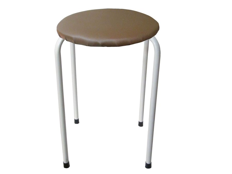 В корзину Купить в 1 клик Табурет универсальный "TABURETTO-15800" круглое сиденье, белые ножки, коричневый верх, кожзам