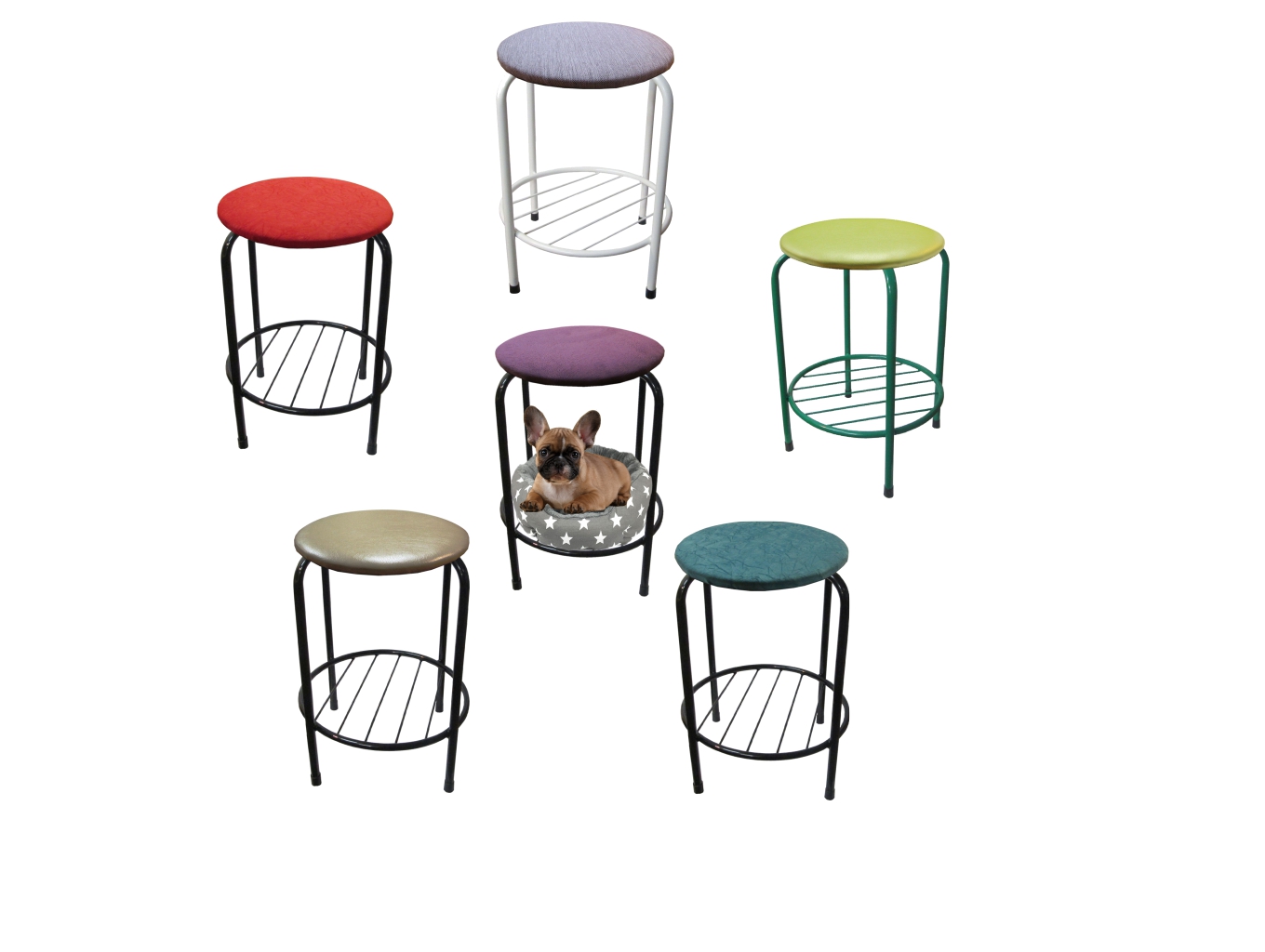 Мягкое покрытие сидушки табурета выполнено из высококачественных мебельных тканей различных выриантов и расцветок, что позволяет гарманично обустроить любое помещение с любым дизайном