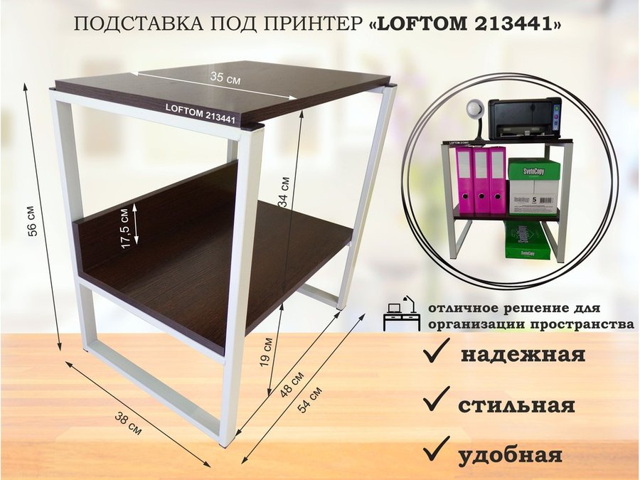 В корзину Купить в 1 клик Подставка под принтер, столик для МФУ, полка для документов, 56см серый "LOFTOM 213441" 35х54, венге