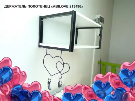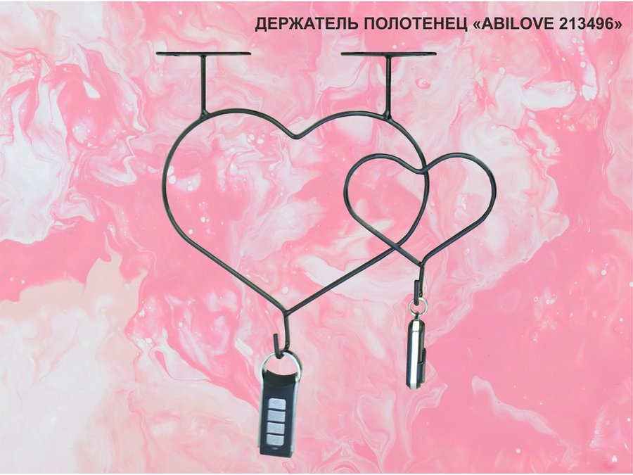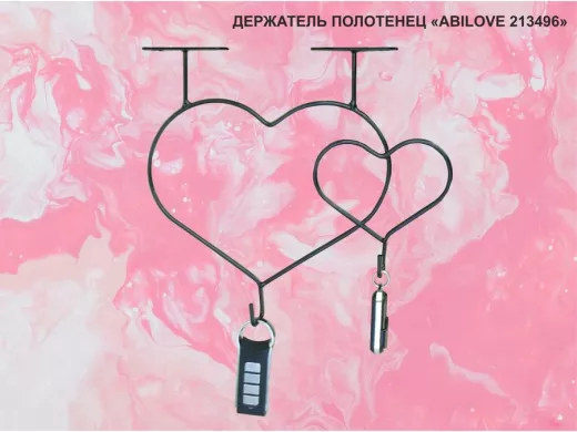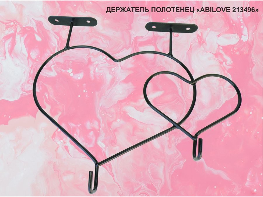 Держатель полотенец под полку, вешалка для вещей, два сердца с крючками, чёрный "ABILOVE 213496"
