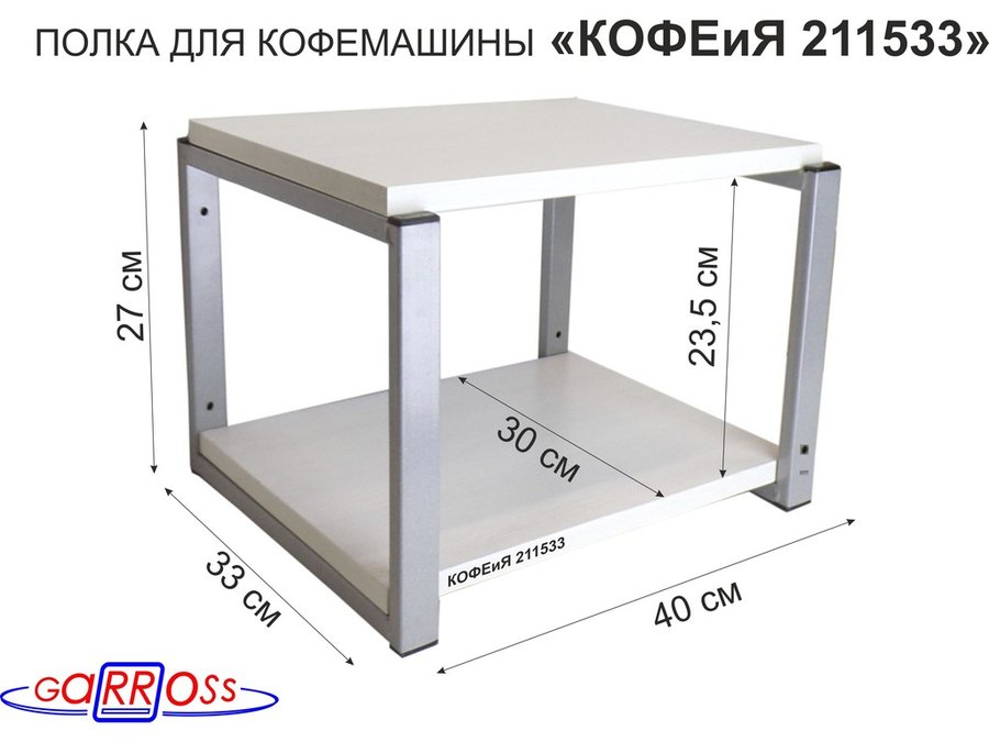 Полка под кофемашину к стене, высота 27см, серый каркас "КОФЕиЯ 211533" полки 30х40см, сосна