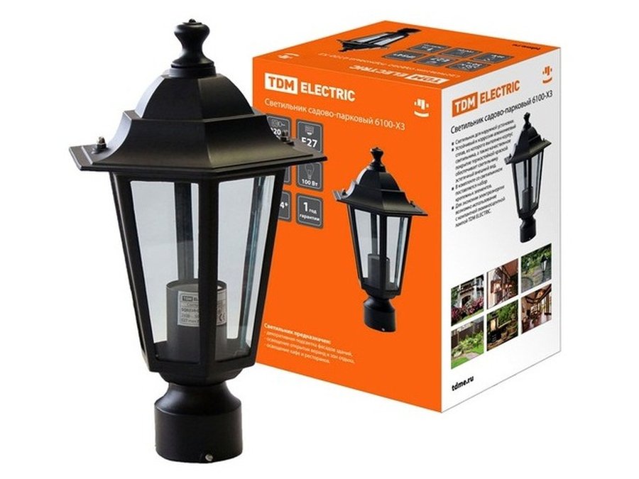 В корзину Купить в 1 клик Светильник TDM садово-парковый 6100-03 шестигранник,100Вт,на опору,черный SQ0330-0008