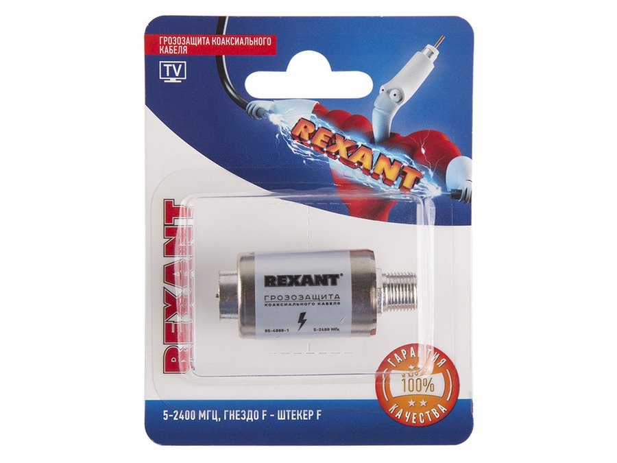 В корзину Купить в 1 клик Грозозащита коаксиального кабеля 5-2400 МГц, (гнездо F - штекер F), (1шт.) REXANT