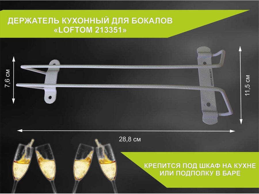 В корзину Купить в 1 клик Держателей для бокалов белый (в наборе 1 шт) "LOFTOM-215382" сушилка для фужеров подвесная