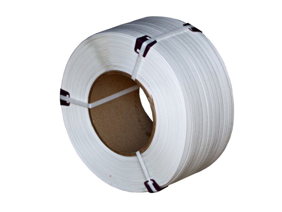 В корзину Купить в 1 клик Лента п/пр 15х0,8мм прочность на разрыв 240 кгс белая, вес 1м 6,8гр (цена за 1 метр, в рулоне 2000м)