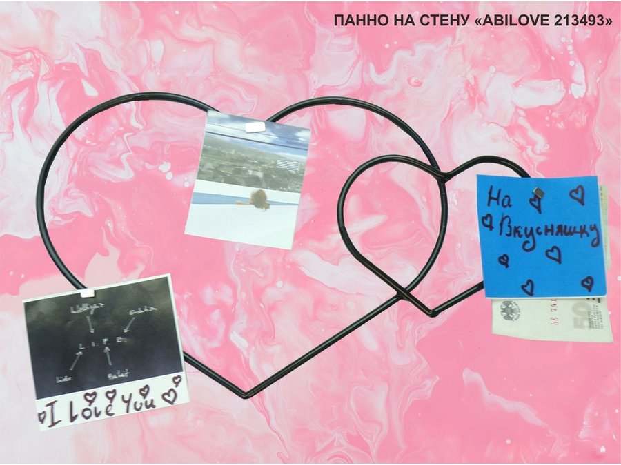 Система держателя выполнена в виде двух сердечек, которую можно оформить в виде свадебного фотоальбома, стены желаний, карты мечты.