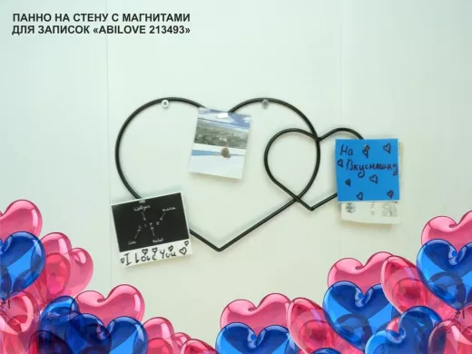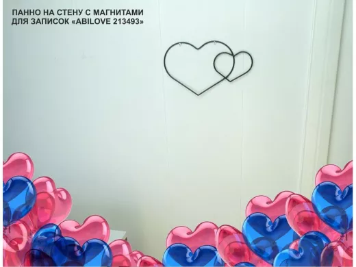 В корзину Купить в 1 клик Панно с 3 магнитами для декупажа, записок и фотографий, два сердца, чёрный "ABILOVE 213493"