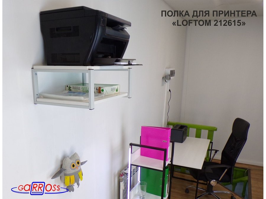 Полка для принтера, подставка для МФУ, 21см серый "LOFTOM 212615" две полки 35х54см,сосна выбеленная