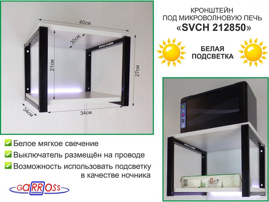 В корзину Купить в 1 клик Полка для принтера или МФУ с подсветкой белого цвета, 25см чёрный "LOFTOM 212850" 30х40 см, сосна