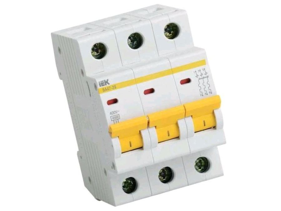 В корзину Купить в 1 клик BA47-29 D50 400В 50А 4,5kA хар-ка D, автомат трёхфазный "ИЭК" MVA20-3-050-D