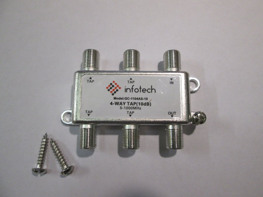 В корзину Купить в 1 клик Ответвитель на 4 вых. 10db Infotech model:GC-1104AS-10 4-WAY TAP 5-1000 MHz