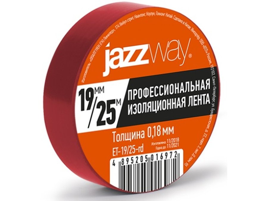 В корзину Купить в 1 клик Изолента 19мм х 25метров красная JAZZway