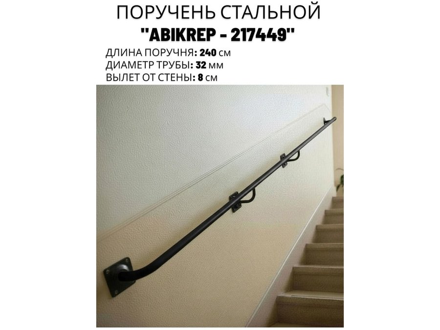 В корзину Купить в 1 клик Поручень пристенный для зданий, длина 240см вылет 8см "ABIKREP-217449" черный, 4 опоры, диаметр 32мм