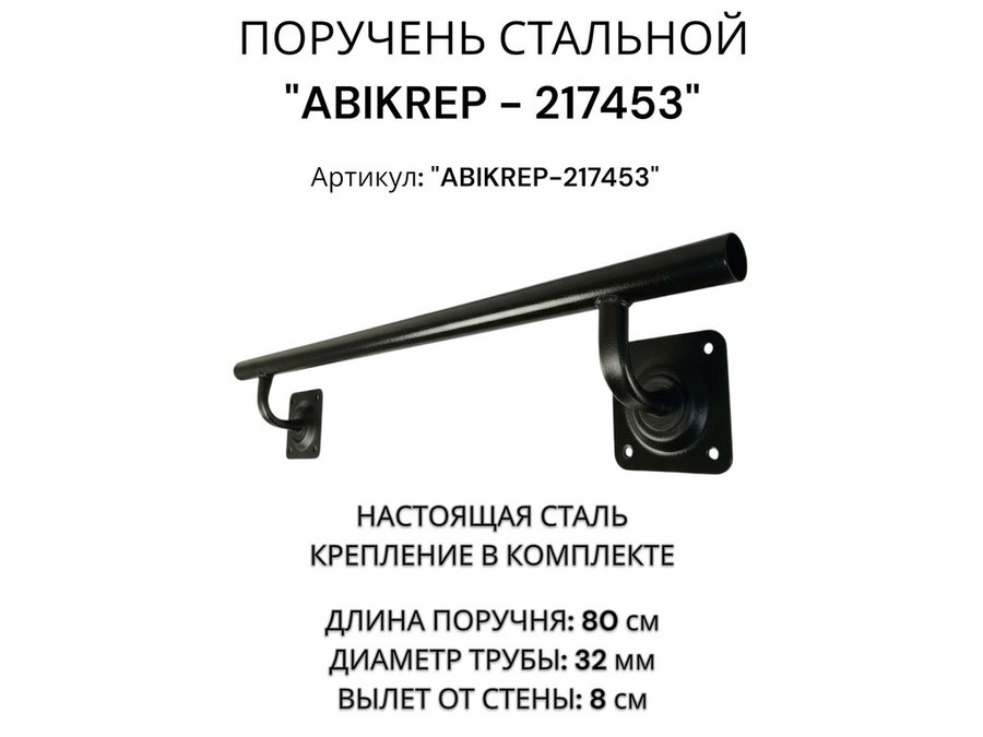 В корзину Купить в 1 клик Поручень пристенный для зданий, длина 80см вылет 8см "ABIKREP-217453" черный, 2 опоры, диаметр 32мм