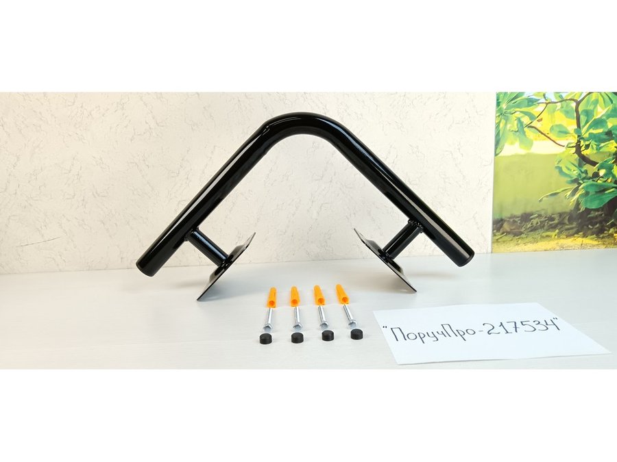 Поручень угол 90 гр, внутренний, 25х25см "ПоручПро-217532" вылет 10см, черный, 2 опоры, диаметр 32мм