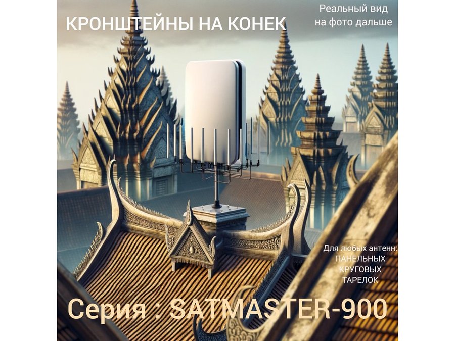 • "SATMASTER-900" ЧЁРНЫЙ антенный кронштейн предназначен для установки антенн мобильного интернета, спутникового и эфирного цифрового телевидения, антенн радиостанций всех диапазонов. Крепится в самую высокую точку дома на конёк двускатной крыши