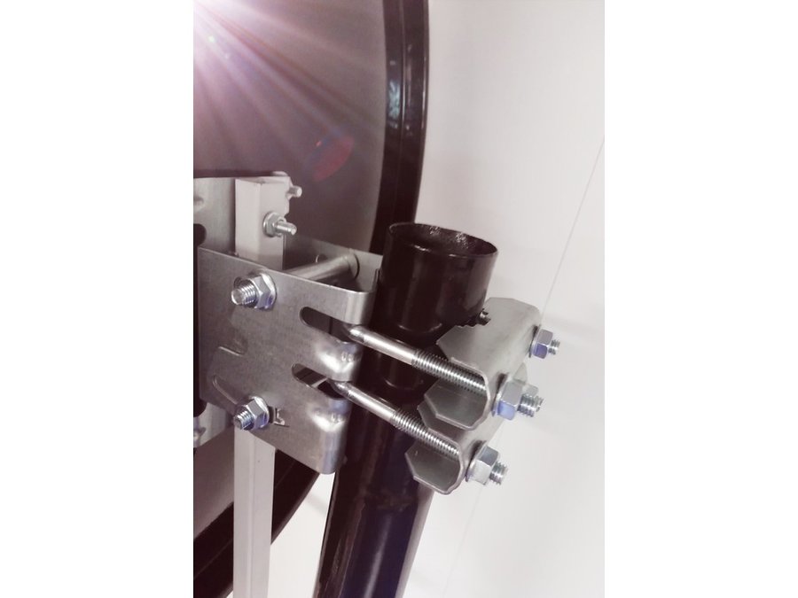 • Кронштейн усилен 4-мя стальными косынками, это позволяет получить большую прочность для крепления спутниковых тарелок 0,6м и любых других антенн