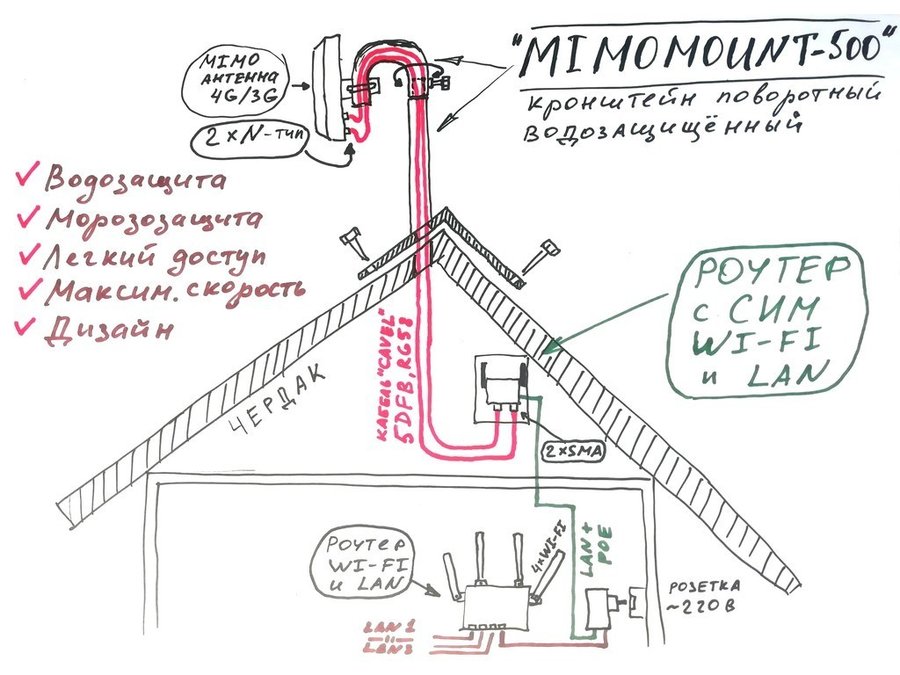 • Появляется возможно красиво установить антенну для мобильного интернета, добиться высоких скоростей и длительного срока службы.