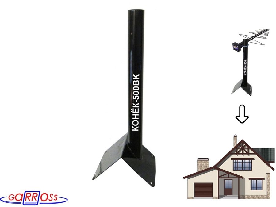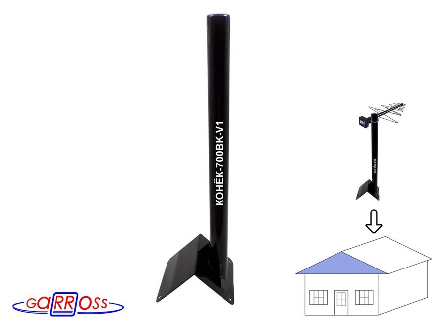 Кронштейн антенный на конёк крыши "КОНЁК-V4-700BK-216112" черный,высота 70 см, диам.50мм с заглушкой