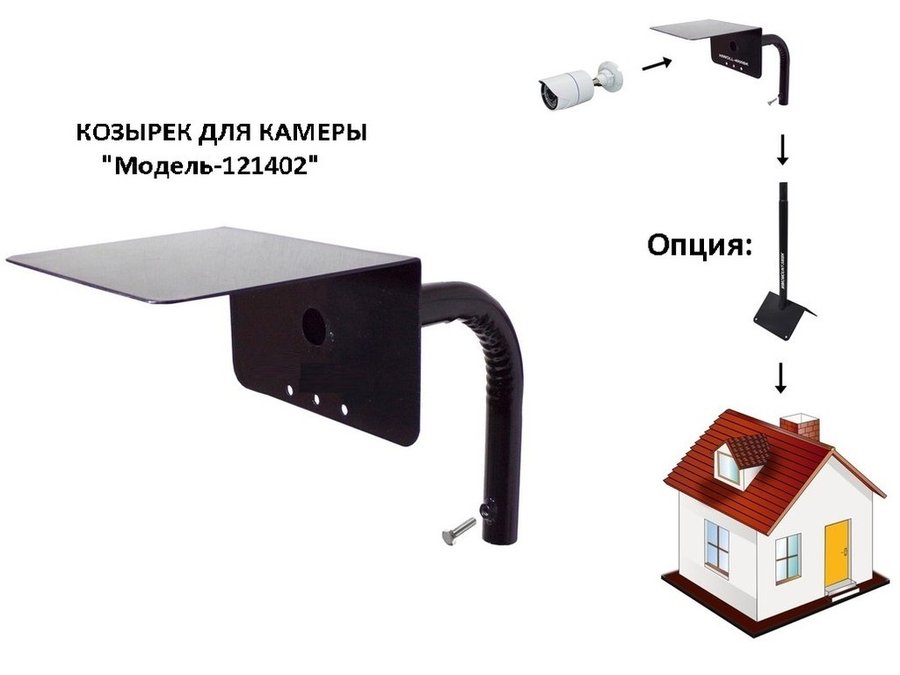В корзину Купить в 1 клик Кронштейн с козырьком для камеры видеонаблюдения "HIWOLL-SPIN-121402" черный, вылет 25см, с болтом