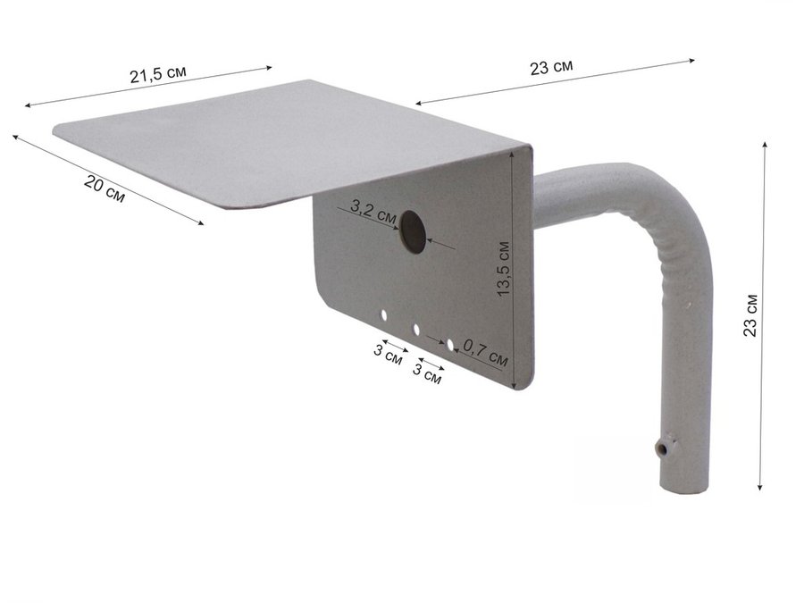 Кронштейн с козырьком предназначен для крепления видеокамер и защиты их от дождя, снега и солнца.