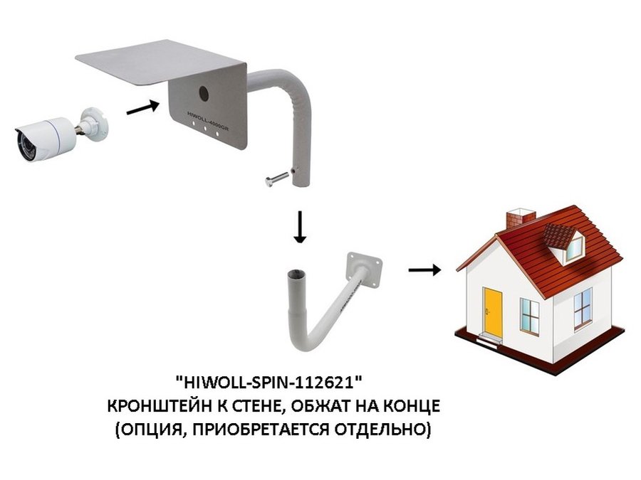 Кронштейн с козырьком для камеры видеонаблюдения "HIWOLL-SPIN-121403" серый, вылет 25см, с болтом