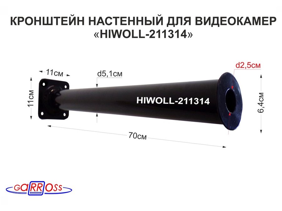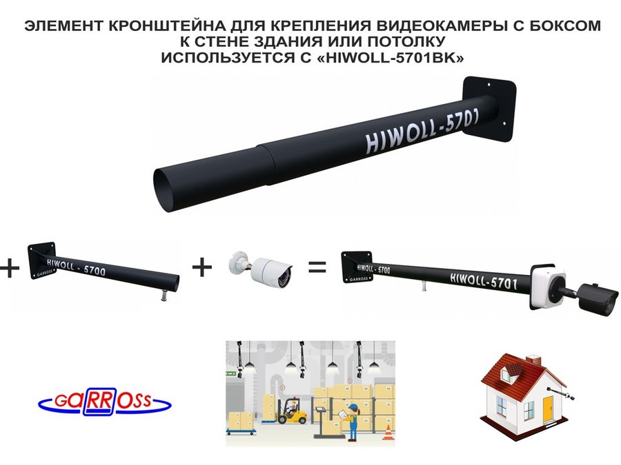 Кронштейн "HIWOLL-VILET- 700B" бокс для 2-х видеокамер и прожекторов на стену, вылет 0,7метра,чёрный