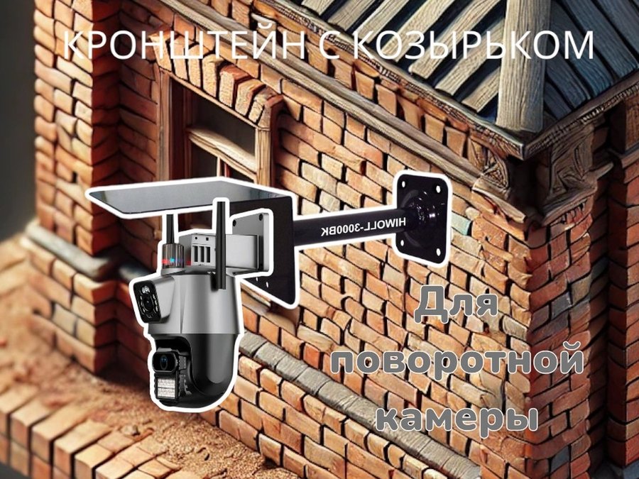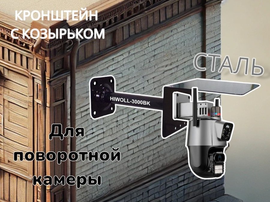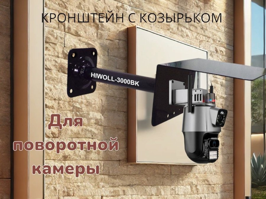 Кронштейн для поворотной камеры с вылетом 25см и козырьком для защиты "HIWOLL-216162" черный, сталь