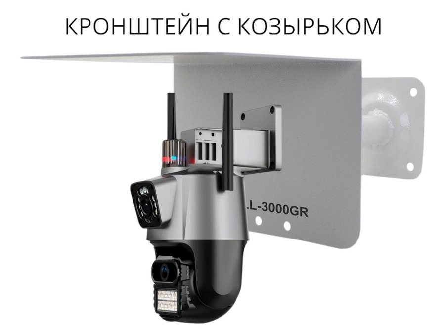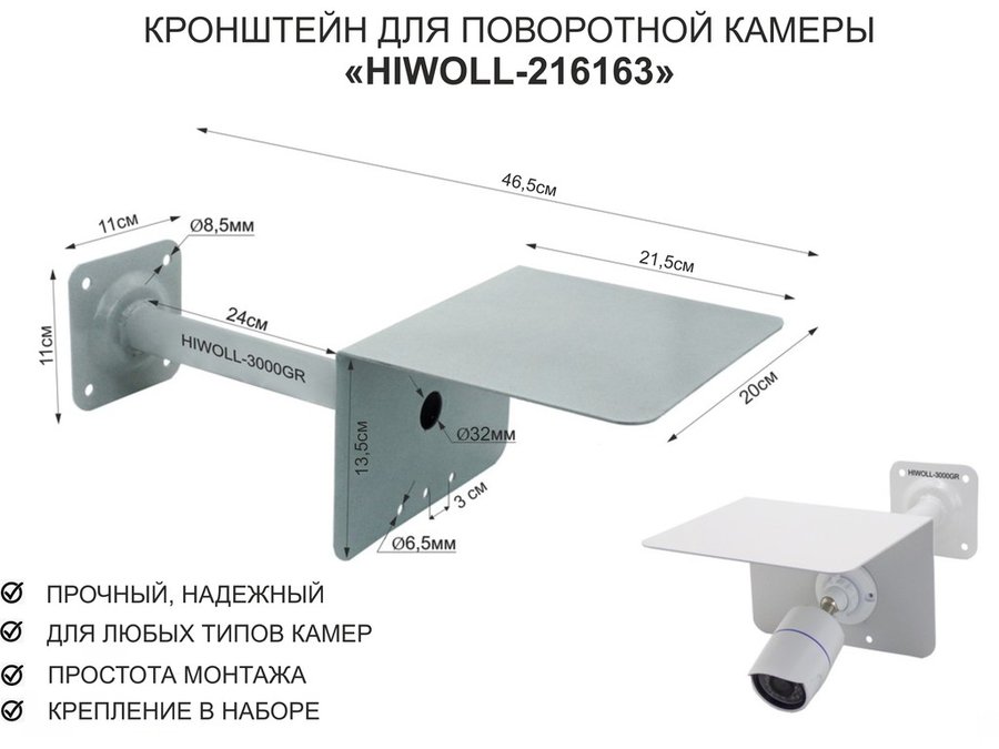 Кронштейн для поворотной камеры с вылетом 25см и козырьком для защиты "HIWOLL-216163" серый, сталь