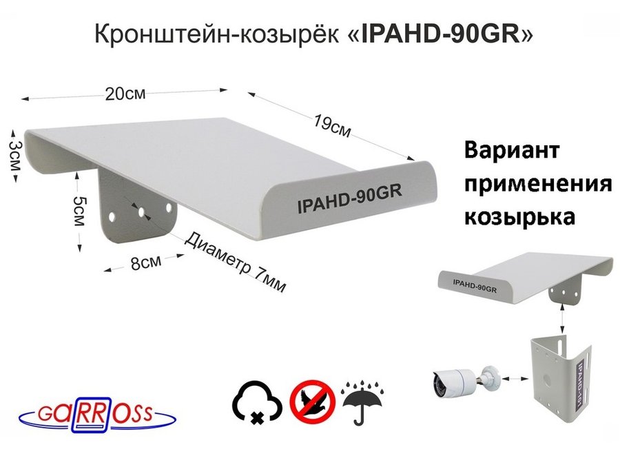 В корзину Купить в 1 клик Козырёк для камер видеонаблюдения "IPAHD-90GR-122423" серый для кронштейнов IPAHD, сталь 2мм,19х20см