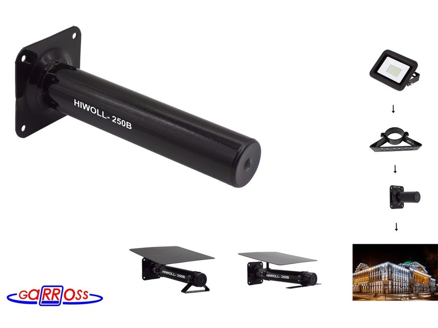 В корзину Купить в 1 клик Кронштейн "HIWOLL- 250B" настенный (потолочный), для видеокамер и прожекторов, диаметр 51мм, чёрный