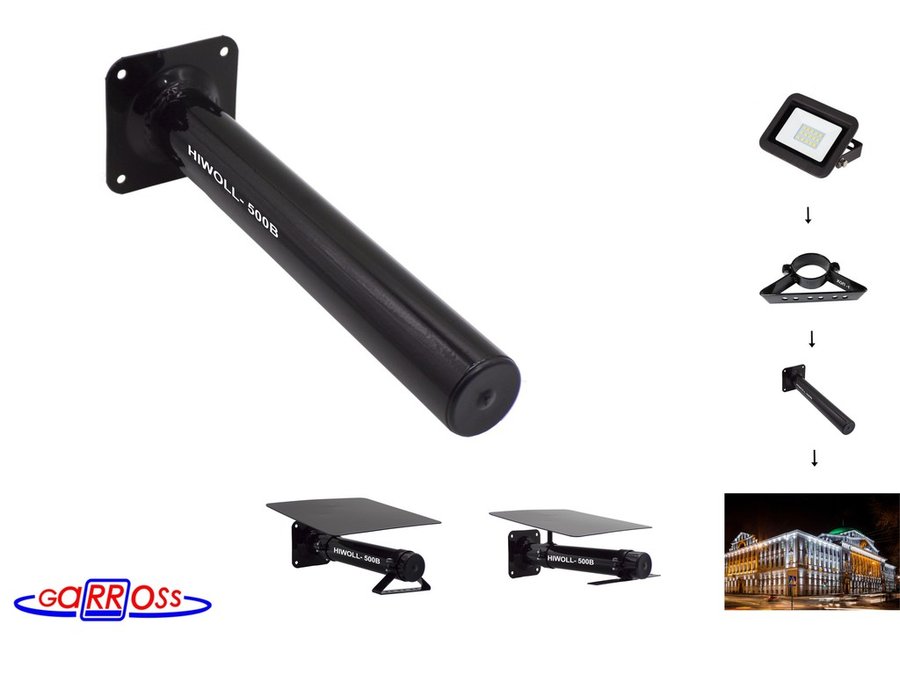 В корзину Купить в 1 клик Кронштейн "HIWOLL- 500B" настенный (потолочный), для видеокамер и прожекторов, диаметр 51мм, чёрный