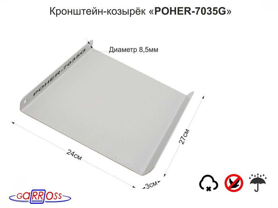 В корзину Купить в 1 клик Кронштейн-козырёк "POHER-7035G-161278" для защиты камеры от дождя, солнца, серый, сталь 2мм, 24х27см