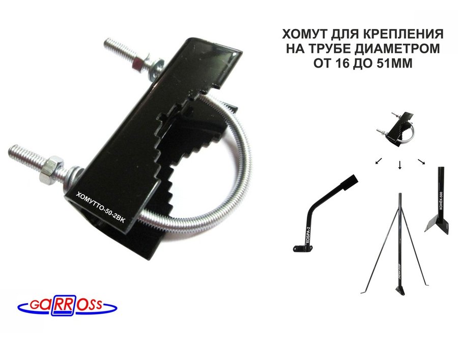 В корзину Купить в 1 клик Кронштейн антенный "ХОМУТТО-50-2B-17924" для крепления на трубе диаметром 16...51мм,сталь 2мм,чёрный