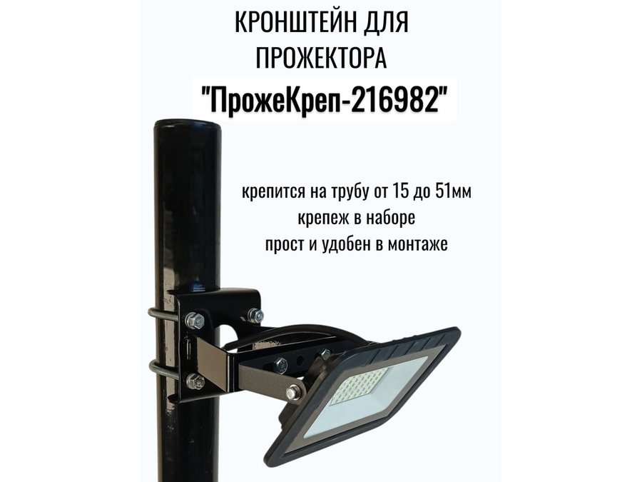 Кронштейн позволяет быстро зафиксировать прожектор на трубе.