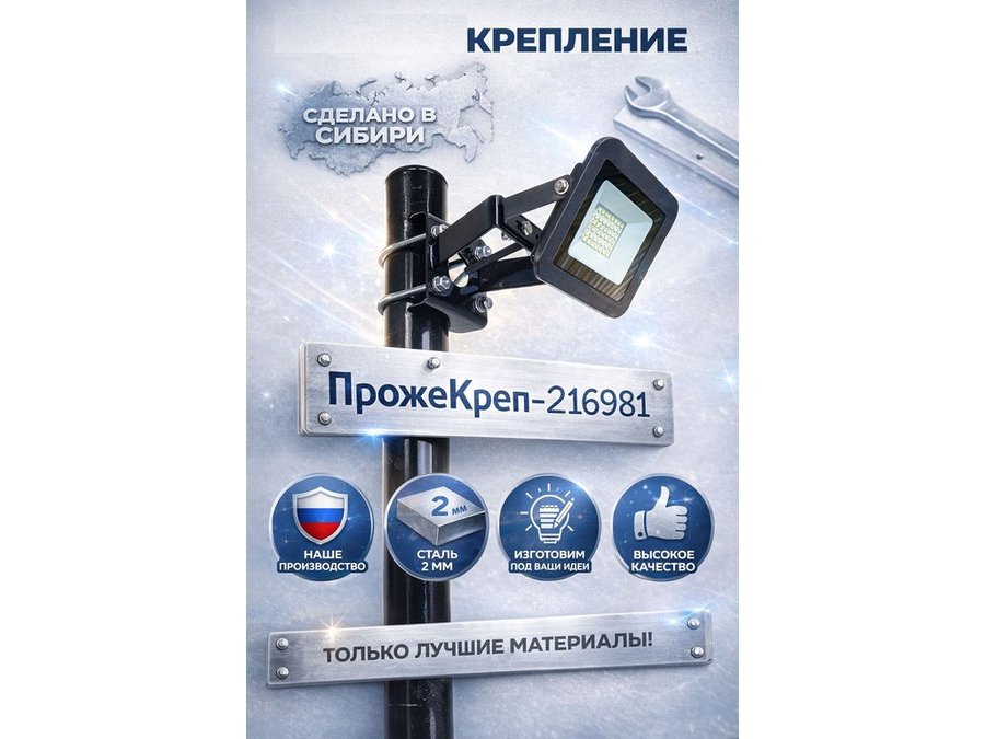 Кронштейн усиленный предназначен для крепления светодиодных прожекторов на трубе диаметром от 15 до 51мм.