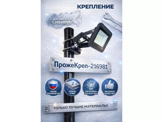 Кронштейн усиленный с отверстием для прожектора на трубе до 51мм "ПрожеКреп-216981" сталь, черный