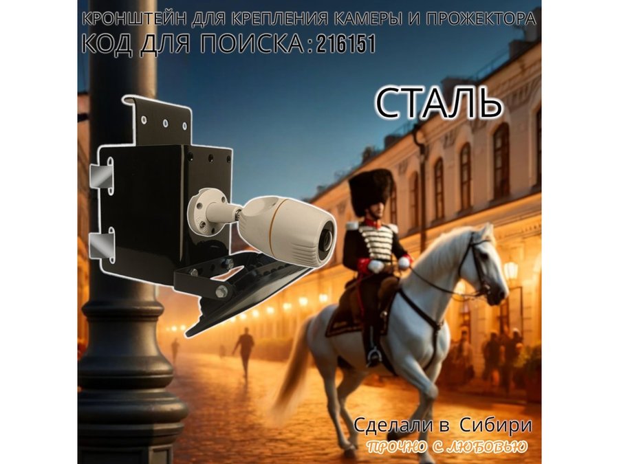 • Универсальный  усиленный кронштейн предназначен для крепления прожектора или камеры на трубе диаметром от 15 до 51мм или на столбе.