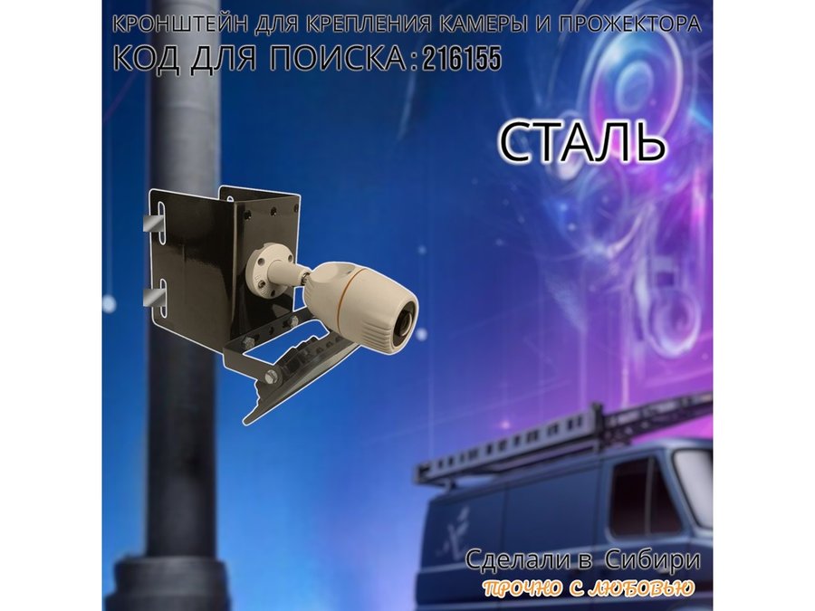 • Универсальный  усиленный кронштейн предназначен для крепления прожектора или камеры на трубе диаметром от 15 до 51мм или на столбе.
