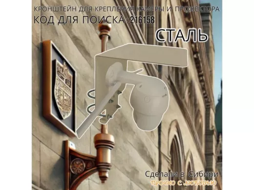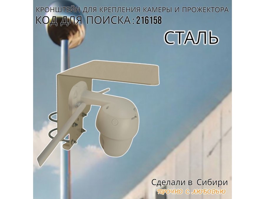 Кронштейн с козырьком на трубу для камеры и прожектора "ПРОЖЕКРЕП-216158" сталь, два хомута, серый