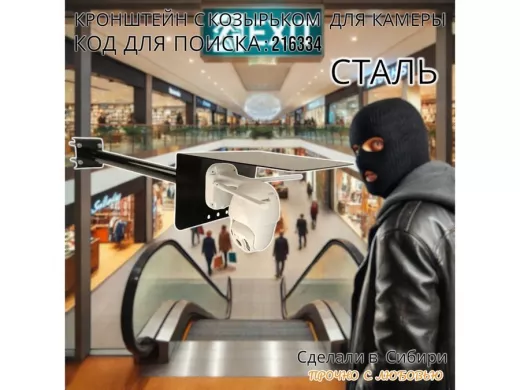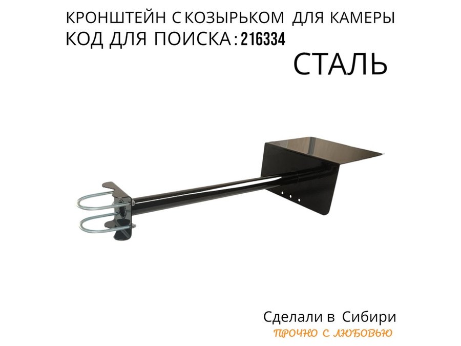 - Универсальный кронштейн с козырьком предназначен для крепления поворотной или цилиндрической камеры и прожектора на трубу.