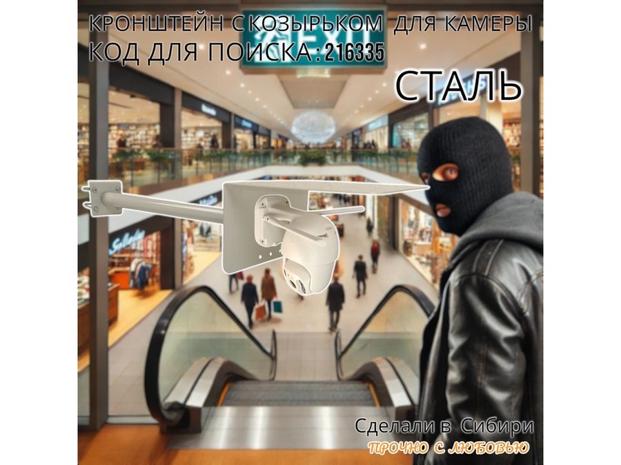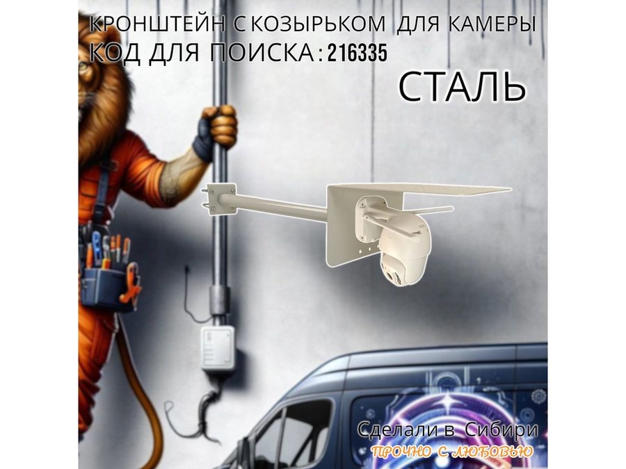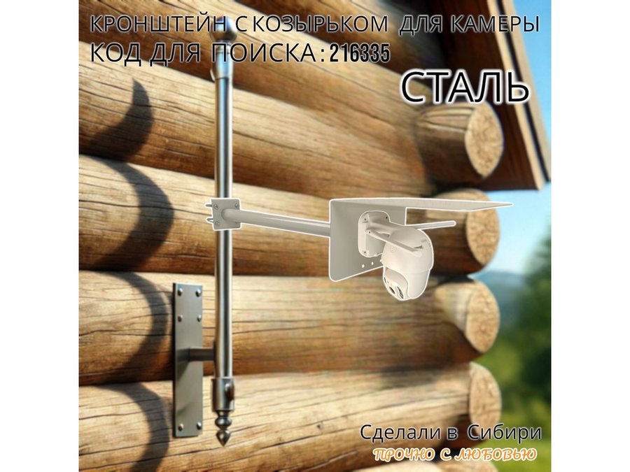 В корзину Купить в 1 клик Кронштейн с козырьком для видеокамеры на трубу 15...51мм вылет 50см 24х22см "HIWOLL-216335" серый