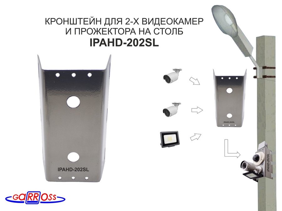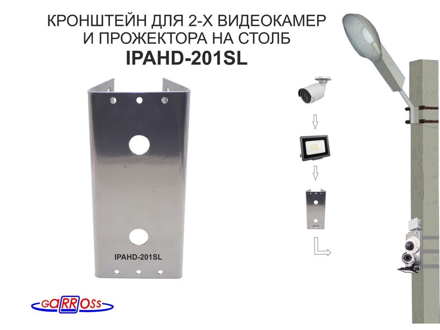 В корзину Купить в 1 клик Кронштейн для двух камер и прожектора на столб серебристый "IPAHD-201SL-89771" под СИП-ленту