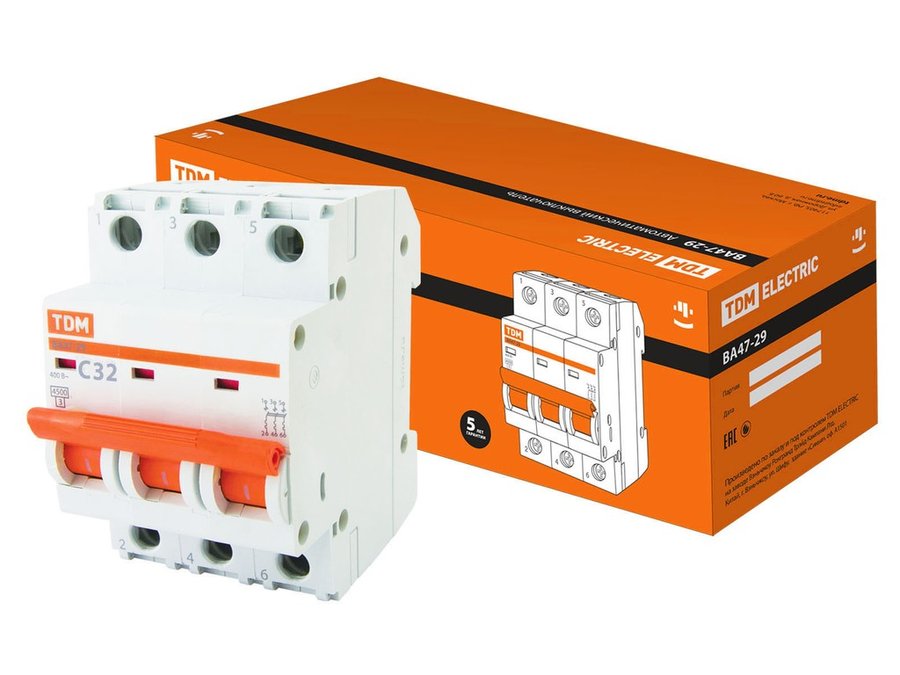 В корзину Купить в 1 клик Автоматический выключатель ВА47-29 3Р 32А 4,5кА х-ка С TDM SQ0206-0112