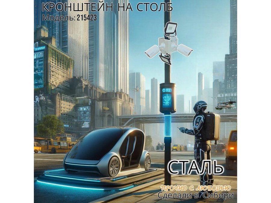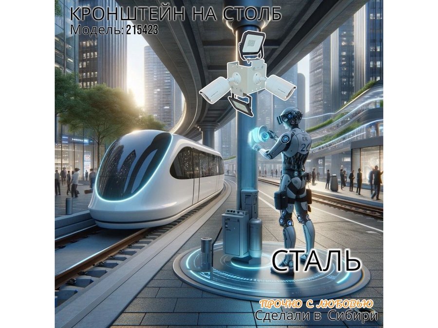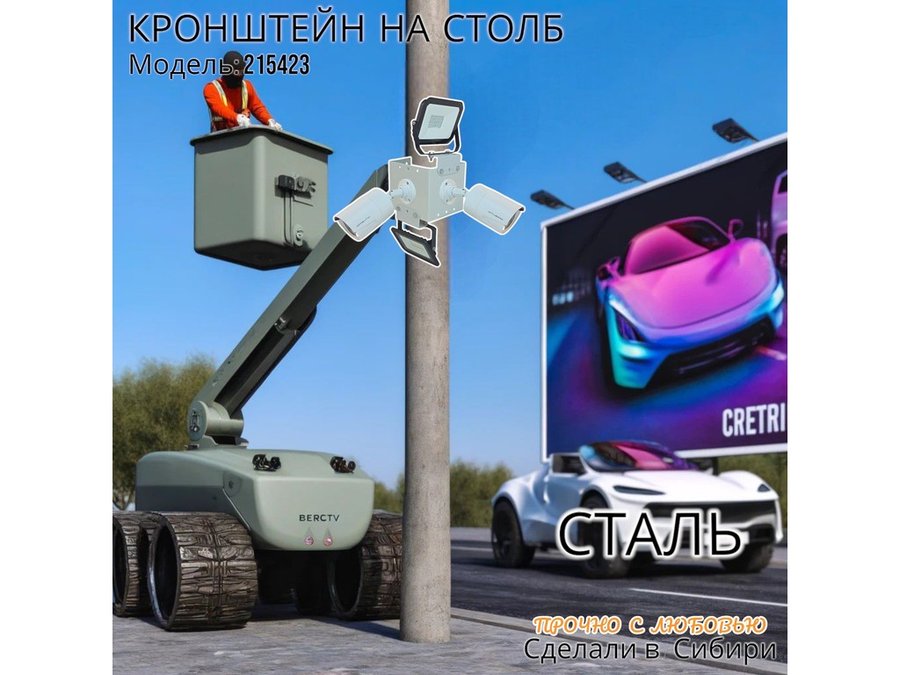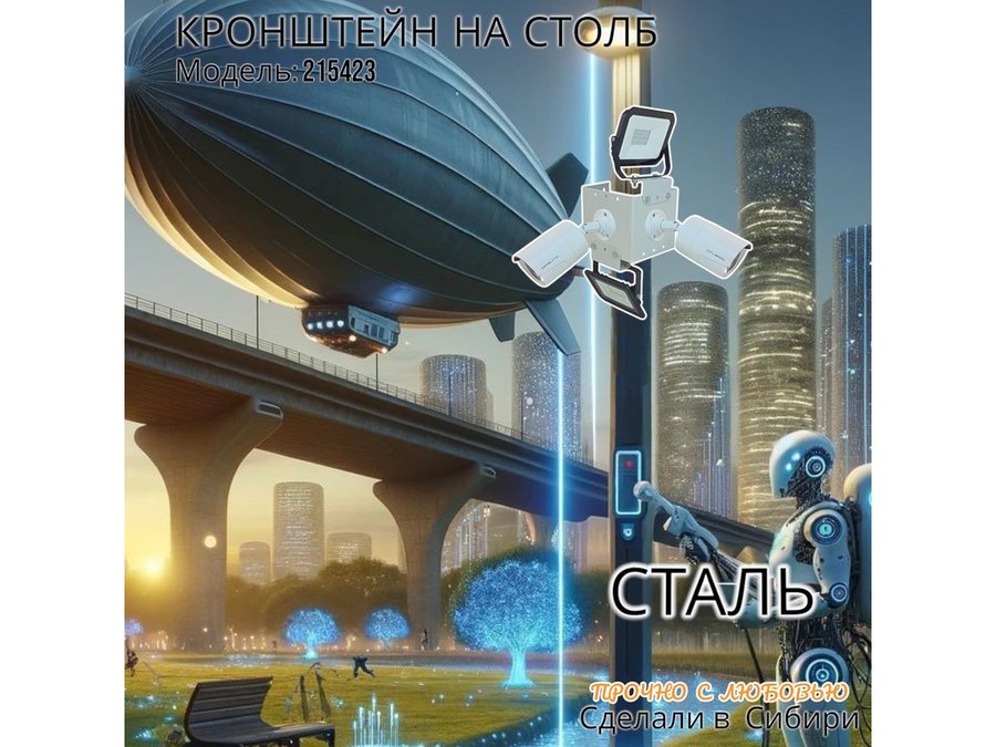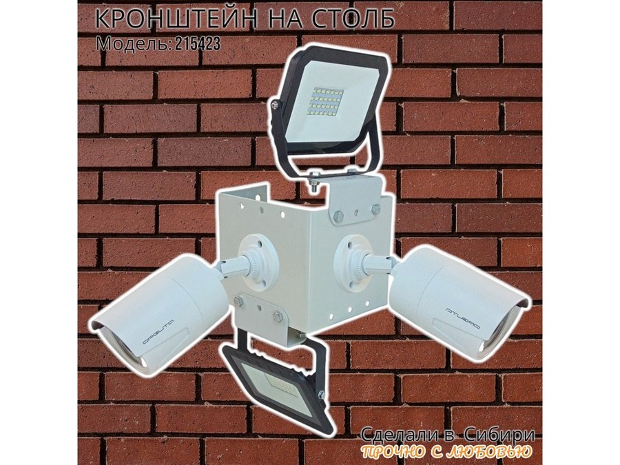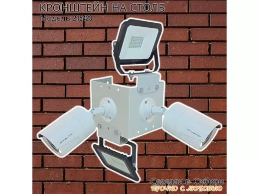 • Кронштейн для двух камер и прожектора, крепится при помощи СИП ленты монтажной на квадратный или круглый столб.