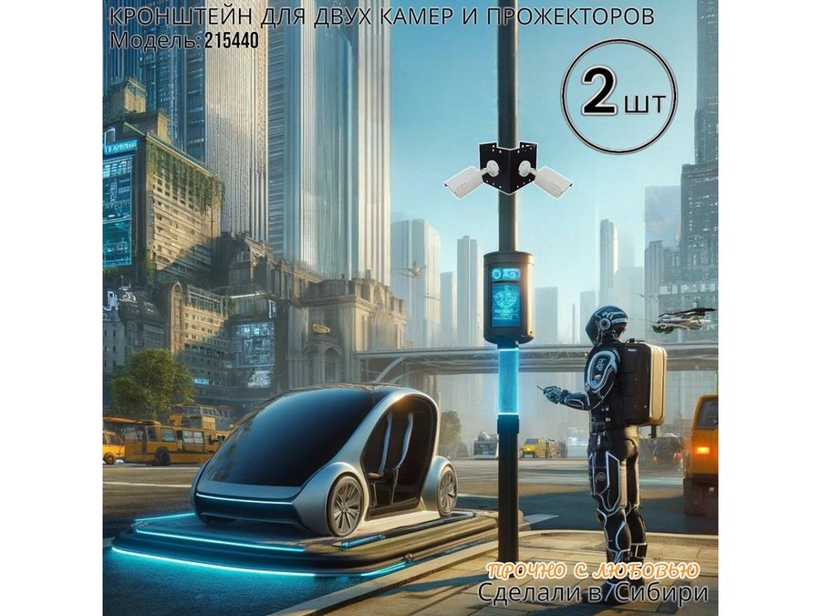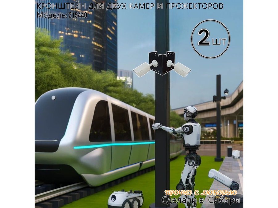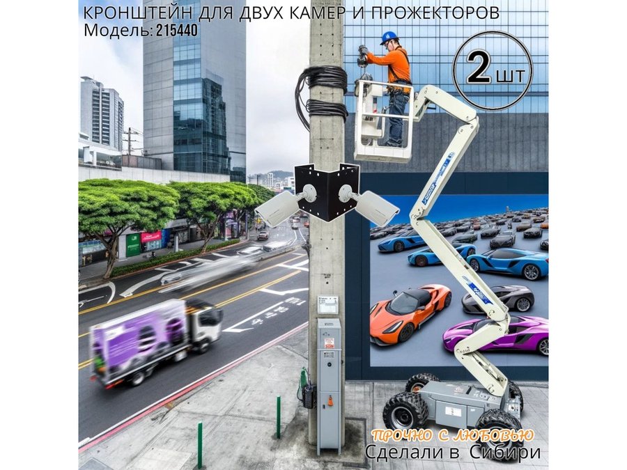 • Кронштейн для двух камер и прожектора, крепится при помощи СИП ленты монтажной на квадратный или круглый столб.