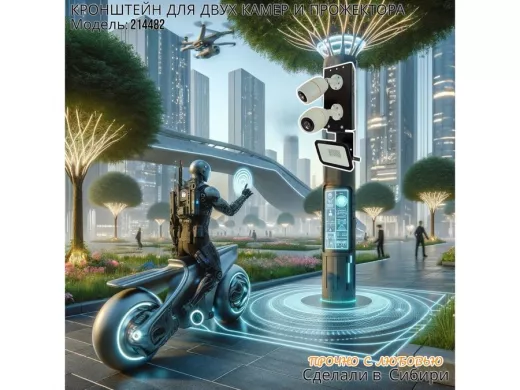 Кронштейн для двух камер на столб с пластиной под прожектор "IPAHD-5-214482" прочная сталь, черный